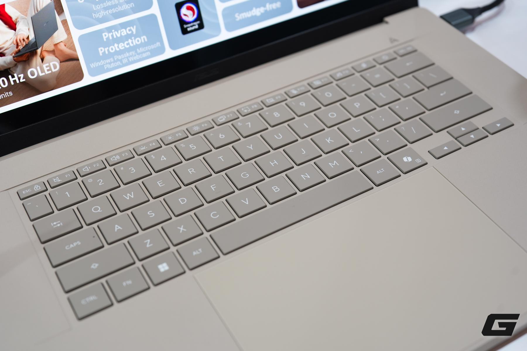 Cả hai mẫu đều sử dụng khung Ceraluminum độc quyền của ASUS nhằm tăng độ bền và hạn chế trầy xước trong quá trình sử dụng. Các bề mặt này còn được phủ lớp xử lý Smudge-Free đa tầng, giúp giảm bám vân tay và vết bẩn, đồng thời giữ cho máy luôn sạch sẽ và ít xuống cấp theo thời gian